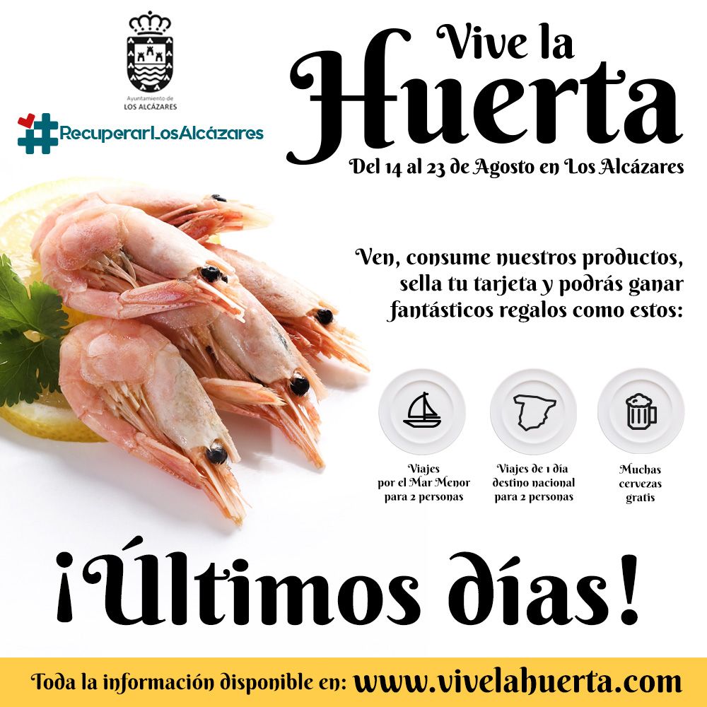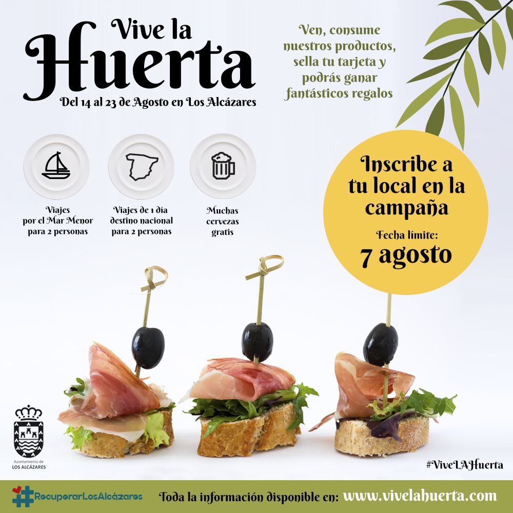 ‘Vive la Huerta’, a la que se han adherido un total de 25 restaurantes, terminaba el pasado 23 de agosto con un único objetivo: dar un nuevo empujón al comercio local a través de esta campaña, que buscaba que alcazareños y visitantes disfrutaran de los productos típicos murcianos y de las recetas tradicionales huertanas.